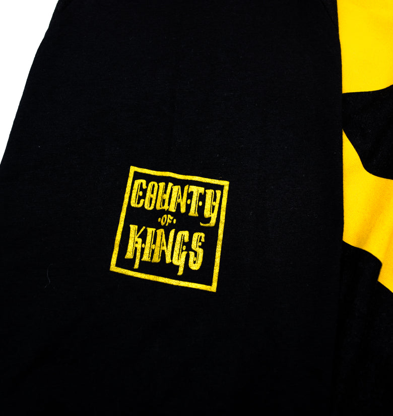County of Kings Raglan. 3/4 Tshirt. Original Art designed by Derolus The PhIllustrator.
