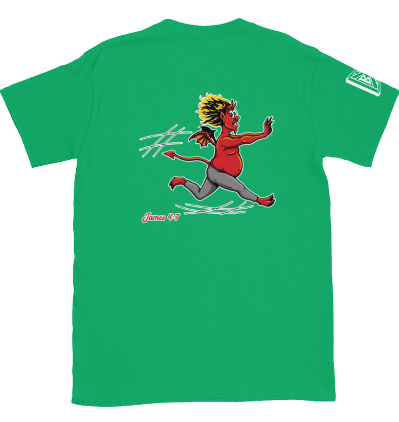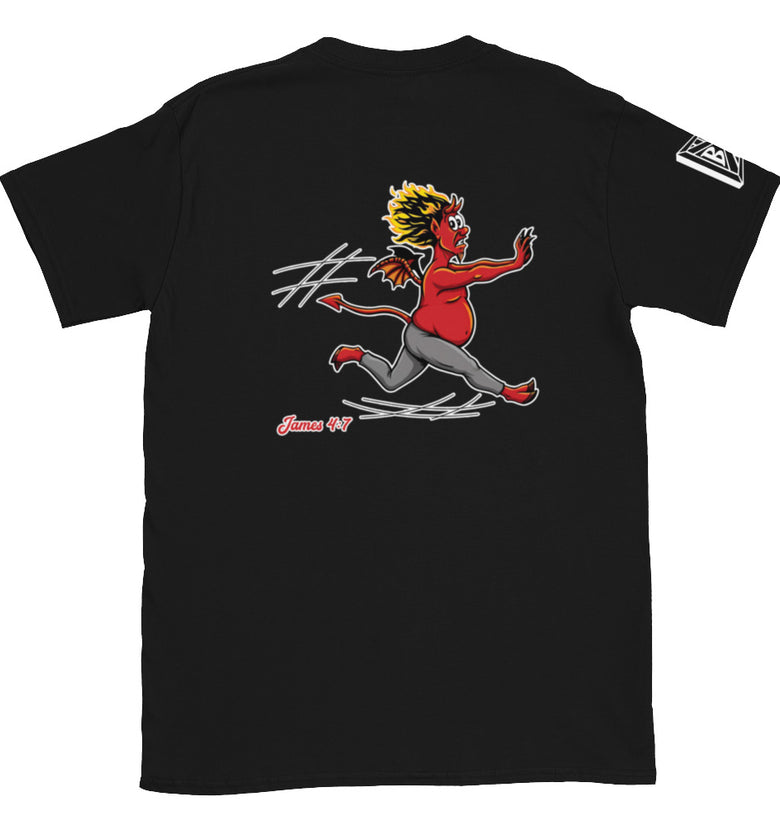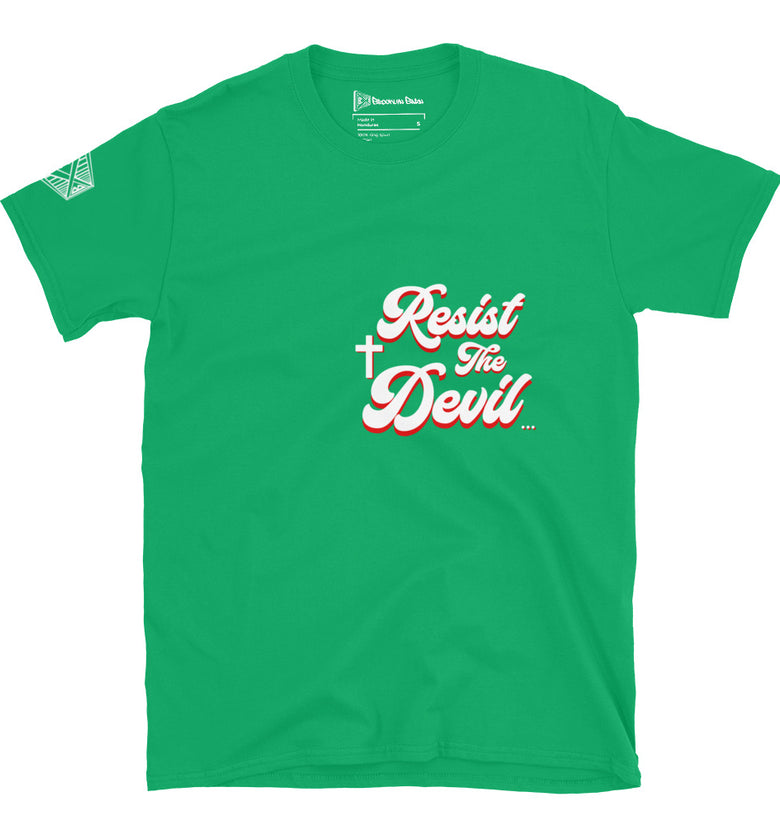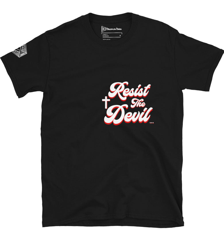 Tags: black owned, Christian tshirt, Church wear, James 4:7, original art, resist, resist the devil