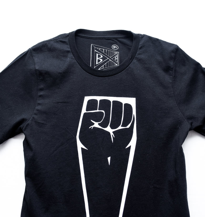 Unisex black t-shirt printed on Bella+Canvas.